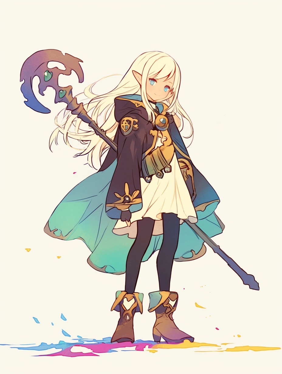 後衛職のような見た目ながら、その細い腕と杖からは想像も付かない剛力で殴り倒す戦闘スタイルでパーティの中衛を担当しており、同業者からは森から来たゴリラ扱いされるのが悩み。