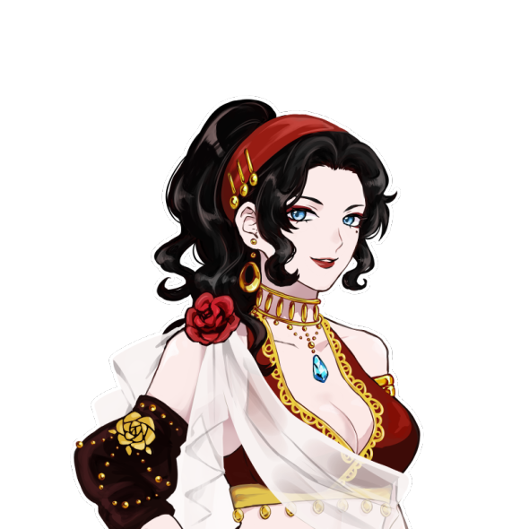 豊かな黒髪に雪のような肌、晴れ渡る青空のような瞳を持つ踊り子の女性。美麗な長剣を武器に、流れるような武踏を行う。