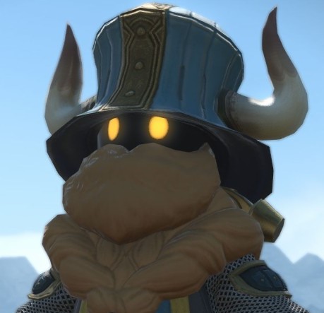 分厚い鉄の防具と兜に身を包み、姿を隠したネヴァーフ。兜と自前かどうかわからない髭で声がくぐもっており、性別はわからない。身長97cm。体重80kg(鎧込み)。