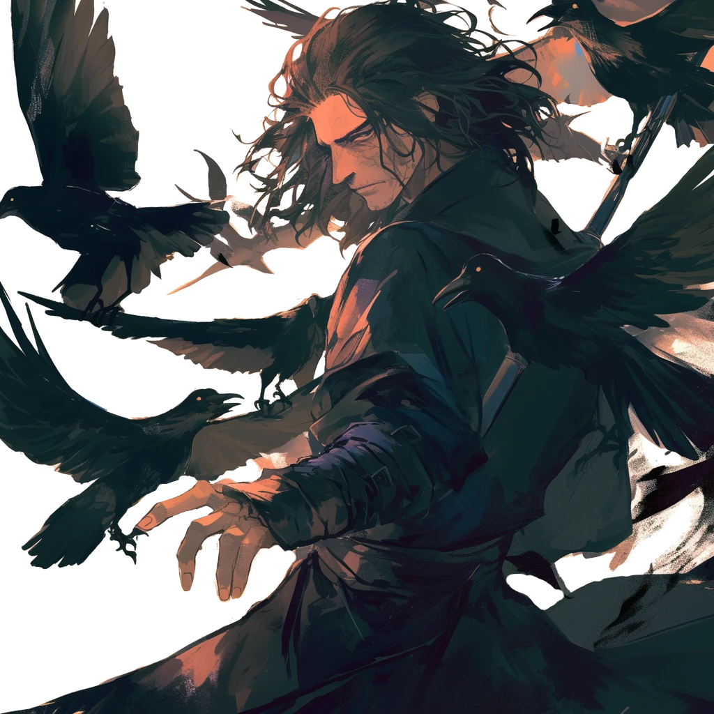 アノンと同じく、あまり多くは語らないが、非常に陰気な性質である一方、眼光は鋭く厳しい人間として映ることが多い。常に真っ黒な服装を身にまとい、使い魔である烏を連れ歩いている。