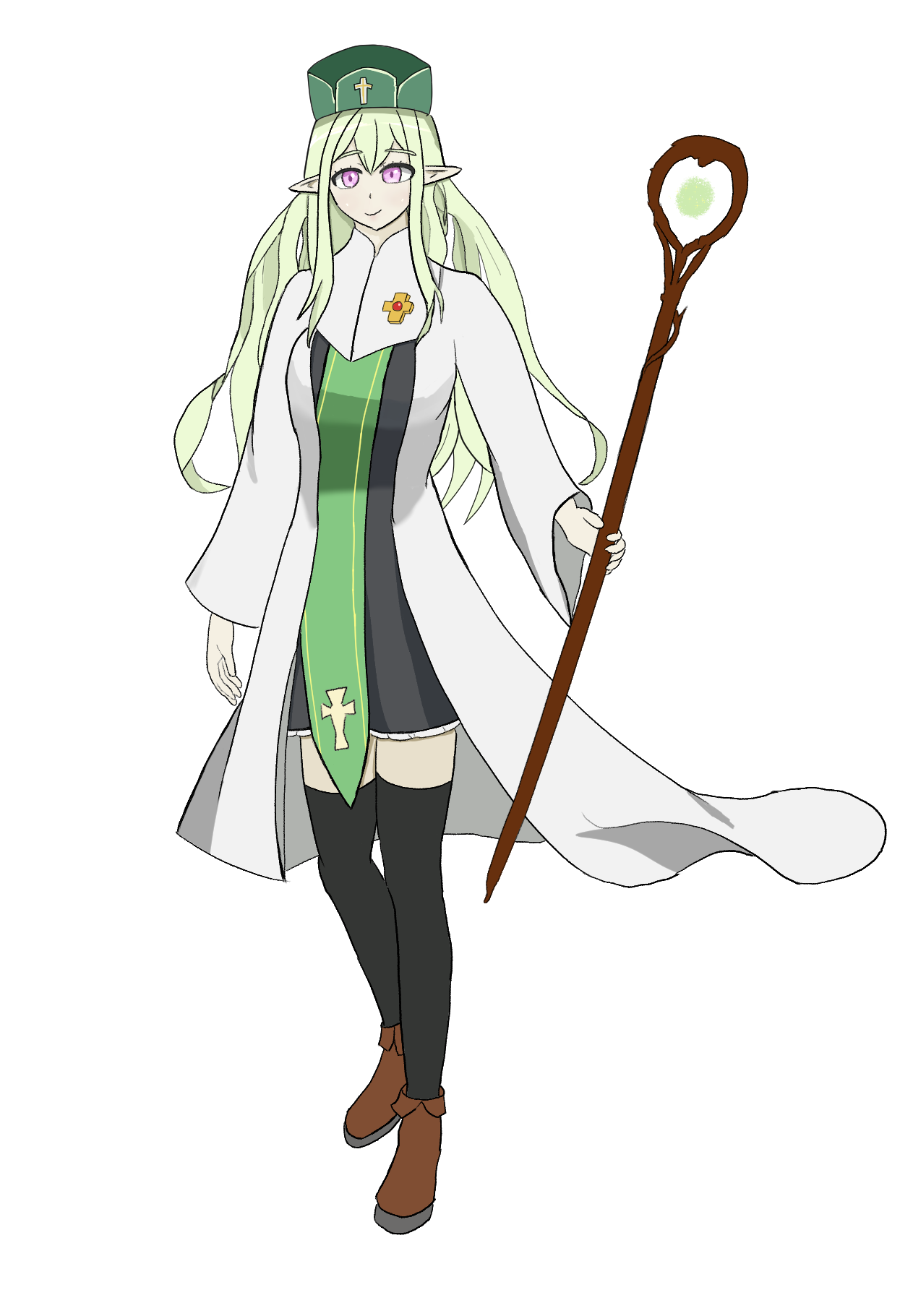 おっとりとしてマイペースな性格。慈悲深く、敵であっても必要以上に傷つけることを好まない。総じて祈りには向いているが、狩りの適性は皆無。