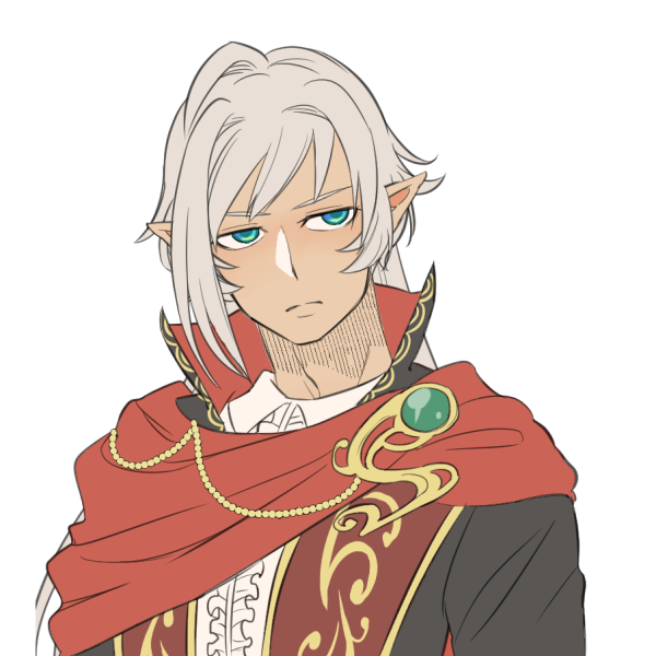 エルダナーンの男性で歳は62(まだまだ若輩)、身長は183cmで褐色の肌と銀色の髪、群青色の瞳の持ち主