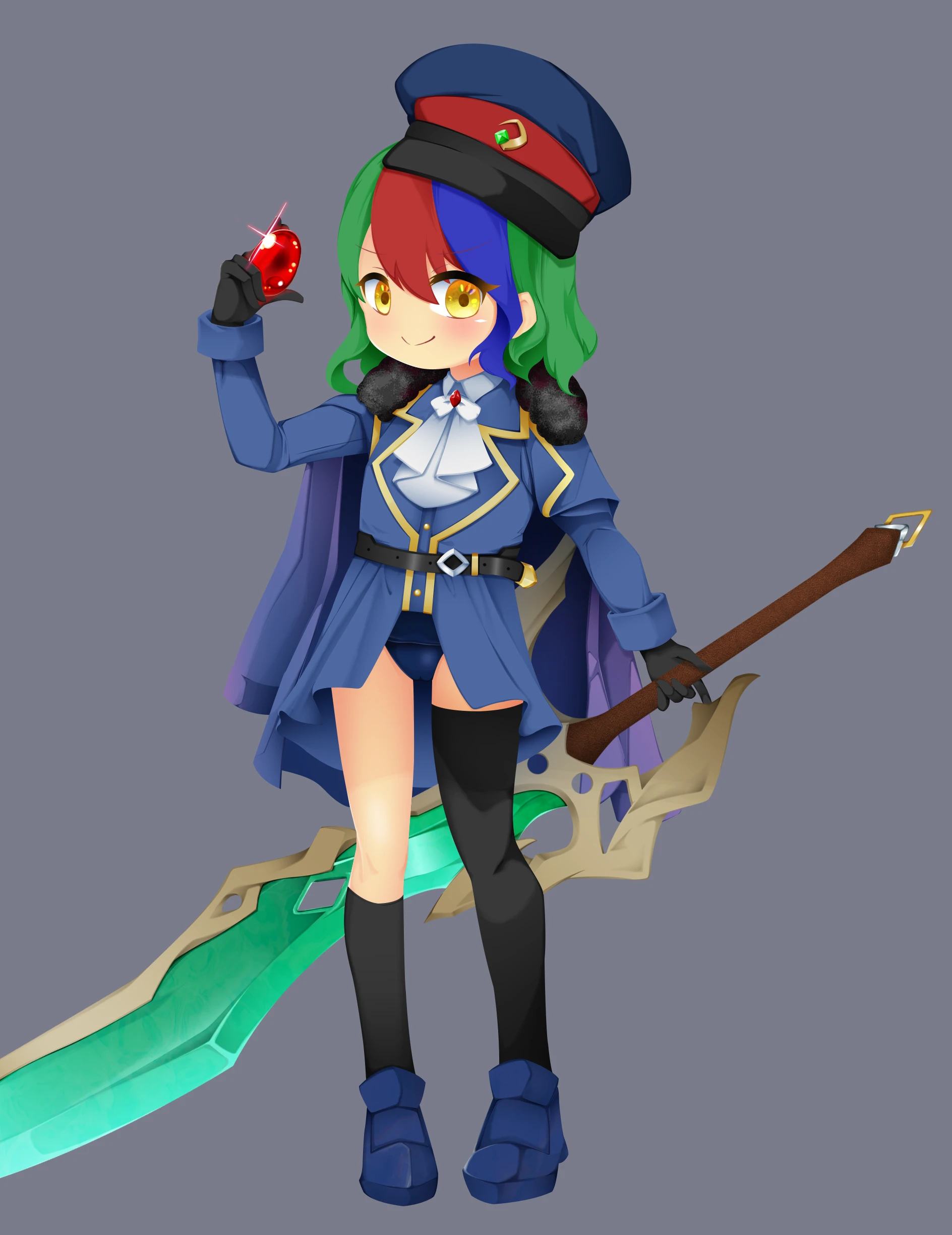 何故か水着を着ている、その上から軍服のようなものを着ている。スフェーン曰く"すいりくりょうようなので、最強"