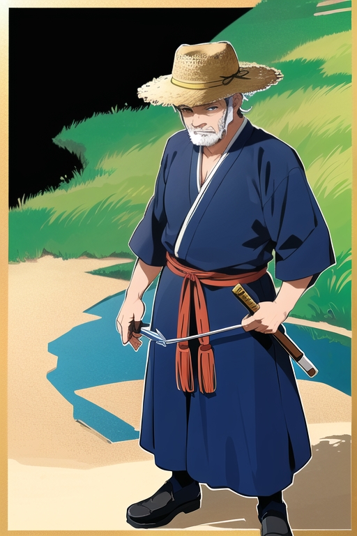 白髪に髭を蓄えた外見の男性型ロボ。和装に藁で作られた帽子を被っている。分類:機械