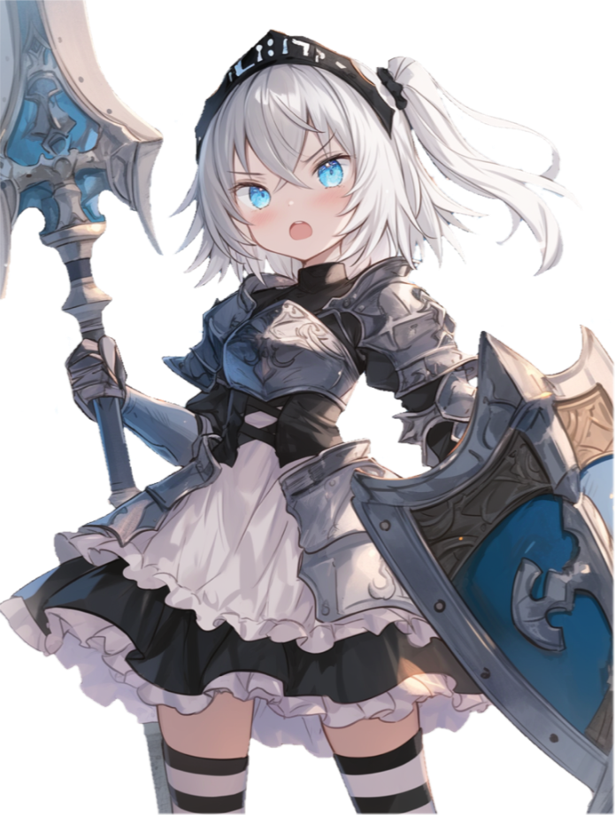メイド服は主人への忠誠を形で示すために着用している。龍の顎のウェイトレスもこなす。慎重かつ丁寧にこなす。