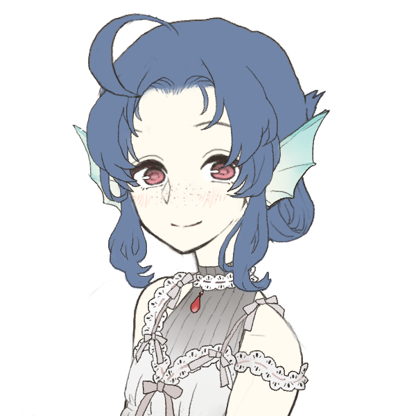 深く神秘的な海を思わせる藍色の髪と、珊瑚色の瞳がトレードマーク。髪はゆるいウェーブが少しだけかかっている。