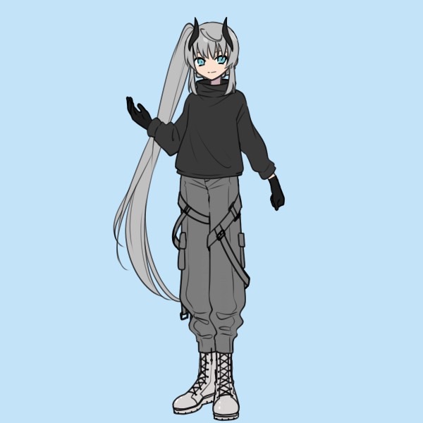 高身長、長めの銀髪にマリンブルーの瞳、傷のついた角が特徴