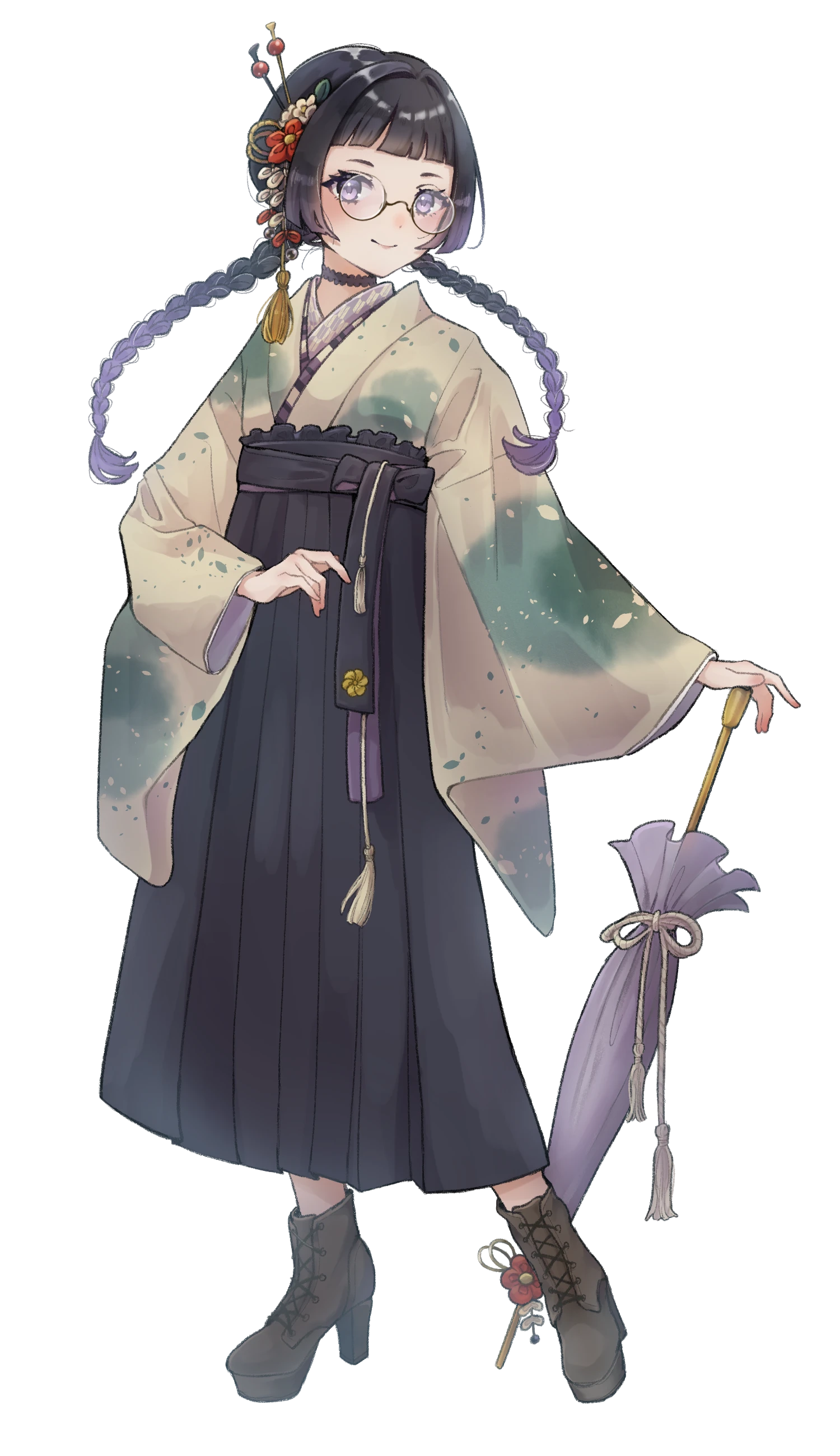 眼鏡をかけた和装の女性