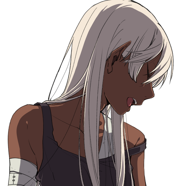 褐色肌に灰色の髪。グライアイという種族を知らなければフォモールと勘違いされかねない。