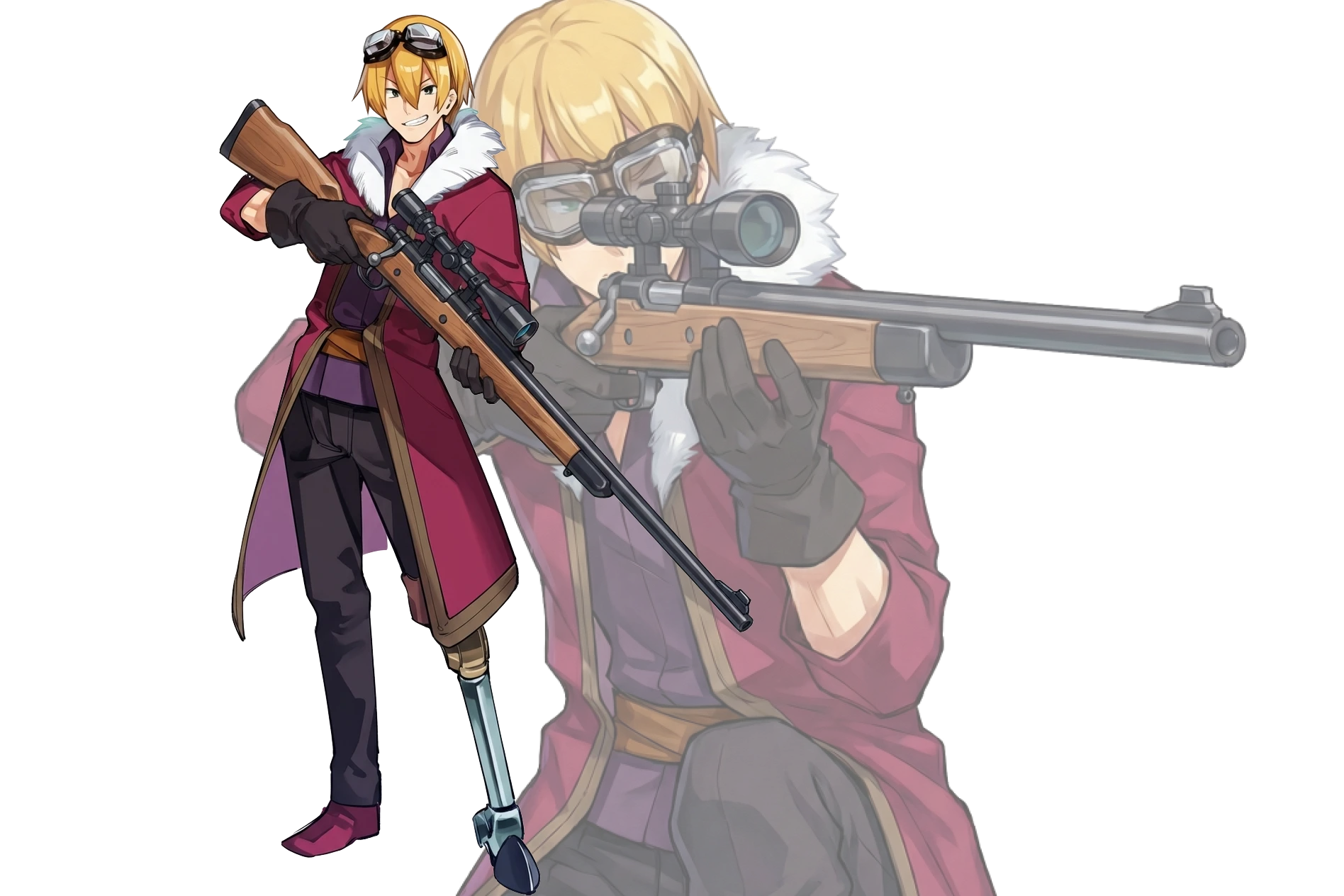 現在は、義足になったことで前衛での戦闘はできなくなったものの、アルストロより賜った狙撃銃を使いこなし、メリア騎士団内の狙撃訓練場にて、非公式ながらも最長射程記録を維持している。
