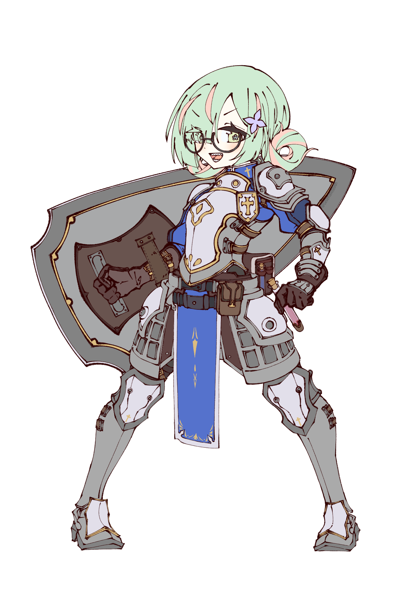 身体の貧弱さが原因で捨てられているため今もコンプレックスとして心を蝕んでおり、自分は非力であると譲らない。大盾より重たい物は持たない主義。