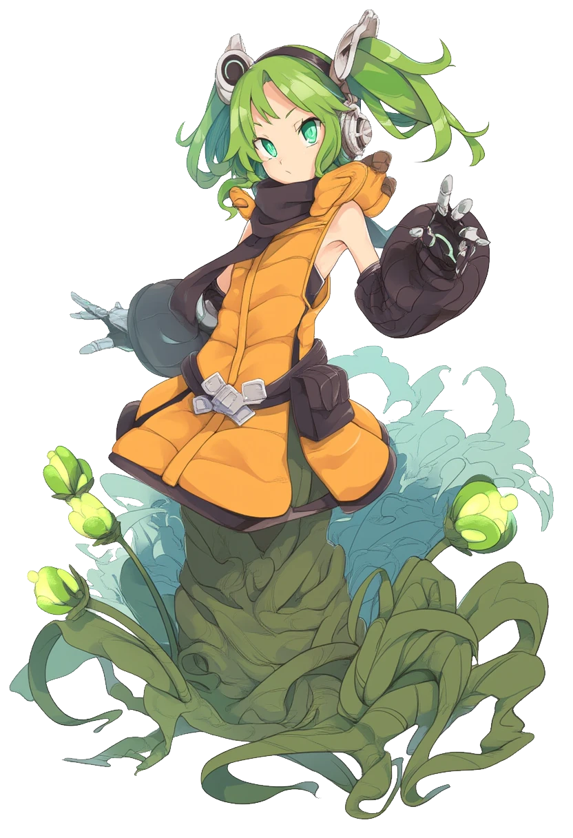 地球によく似た、しかしどこかディストピアな異界からリエンへ“転生(リジェネ―ト)”した“人工妖精(フェアリー・オートマトン)”。「周囲の生物が生きやすい環境を創る」ことを使命として生まれた存在であり、リエンにおける庭園術の技術を習得している。元の世界に帰る意志は無く、自身を雇用したクオン商会に所属する人間の活動をバックアップしている。
