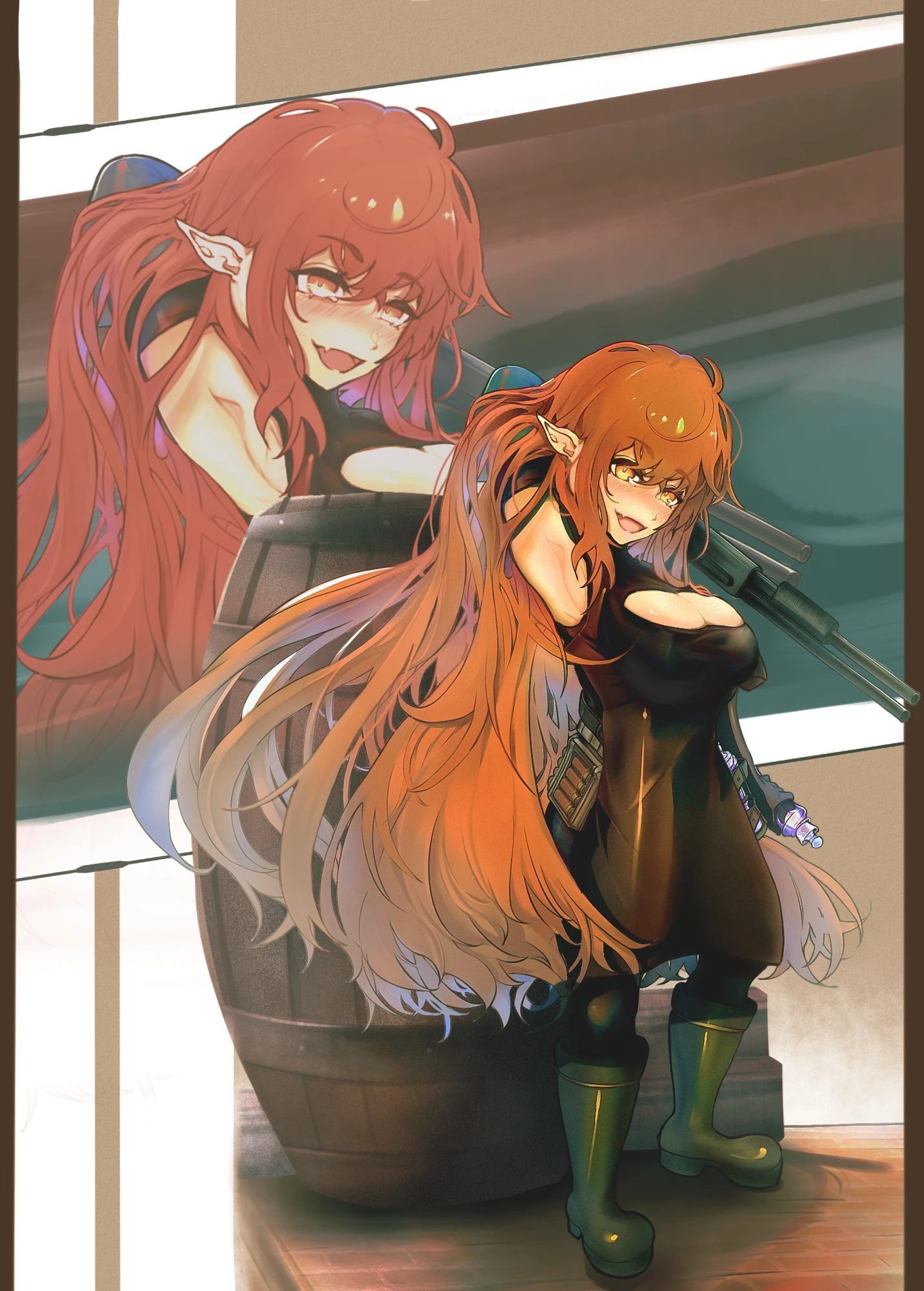 本人は大の酒好きで常にほろ酔い状態である、それでもショットガンに薬草の知識で得た毒を混ぜた弾薬を使い敵を倒す術を持っている。