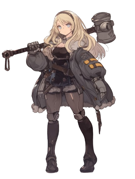 ある場所で製造された後、エリンディル西方に運ばれたエクスマキナ。製作者は不明。コンセプトは殴って攻撃と回復を兼ね備えた兵器で騎士達と一緒に自分も騎士として行動してたが、回復するにも攻撃するにも中途半端として使えない扱いをされ売られることとなった。船で運ばれてる最中に嵐で流され、気づくとエスタの島に流れ着く。誰かを守ったり回復したりするのが好きなため、施療院で働きながら闘技場で自分の主になってくれる人を募集している。