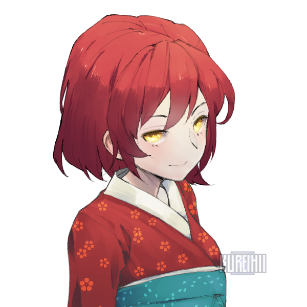 - 韓紅色の髪に金色の瞳