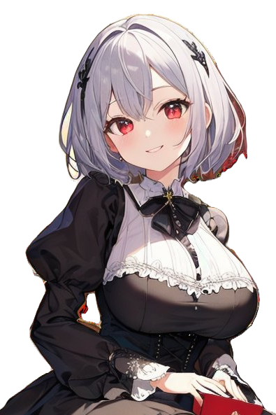 15~20歳くらいの銀髪紅瞳にゴシック調の黒いドレスの少女。
