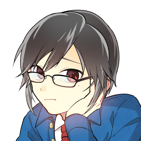 暗赤色の瞳に黒い短髪。色付き眼鏡をかけている。外見はギリギリ中学生くらい。