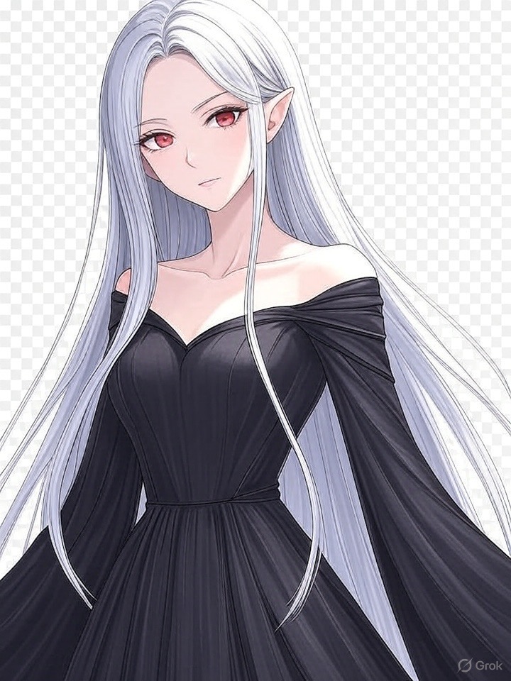 髪:長い銀。