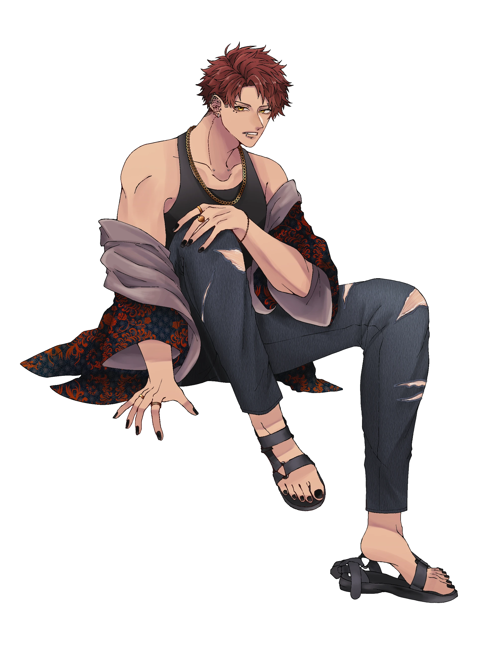 ピアスを身に着けている。