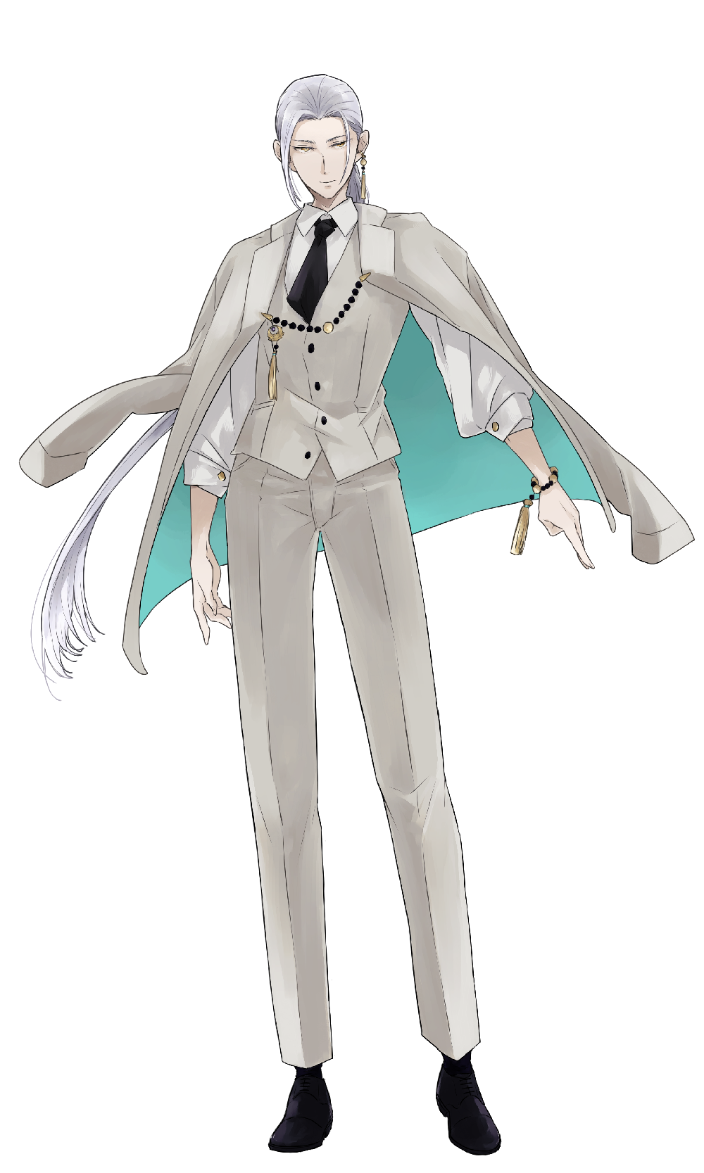 長い白髪の男性。見た目は30代くらいに見える。