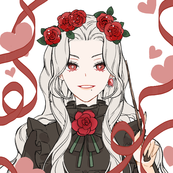 美しい薔薇の華を髪に飾っている。