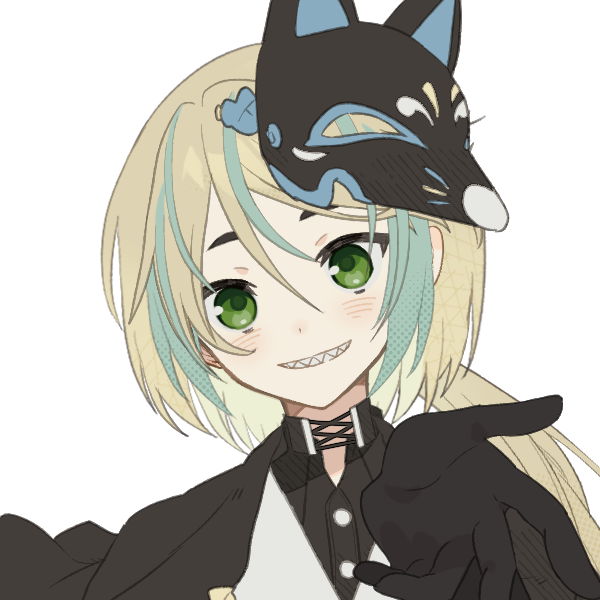 狐のお面を頭につけている