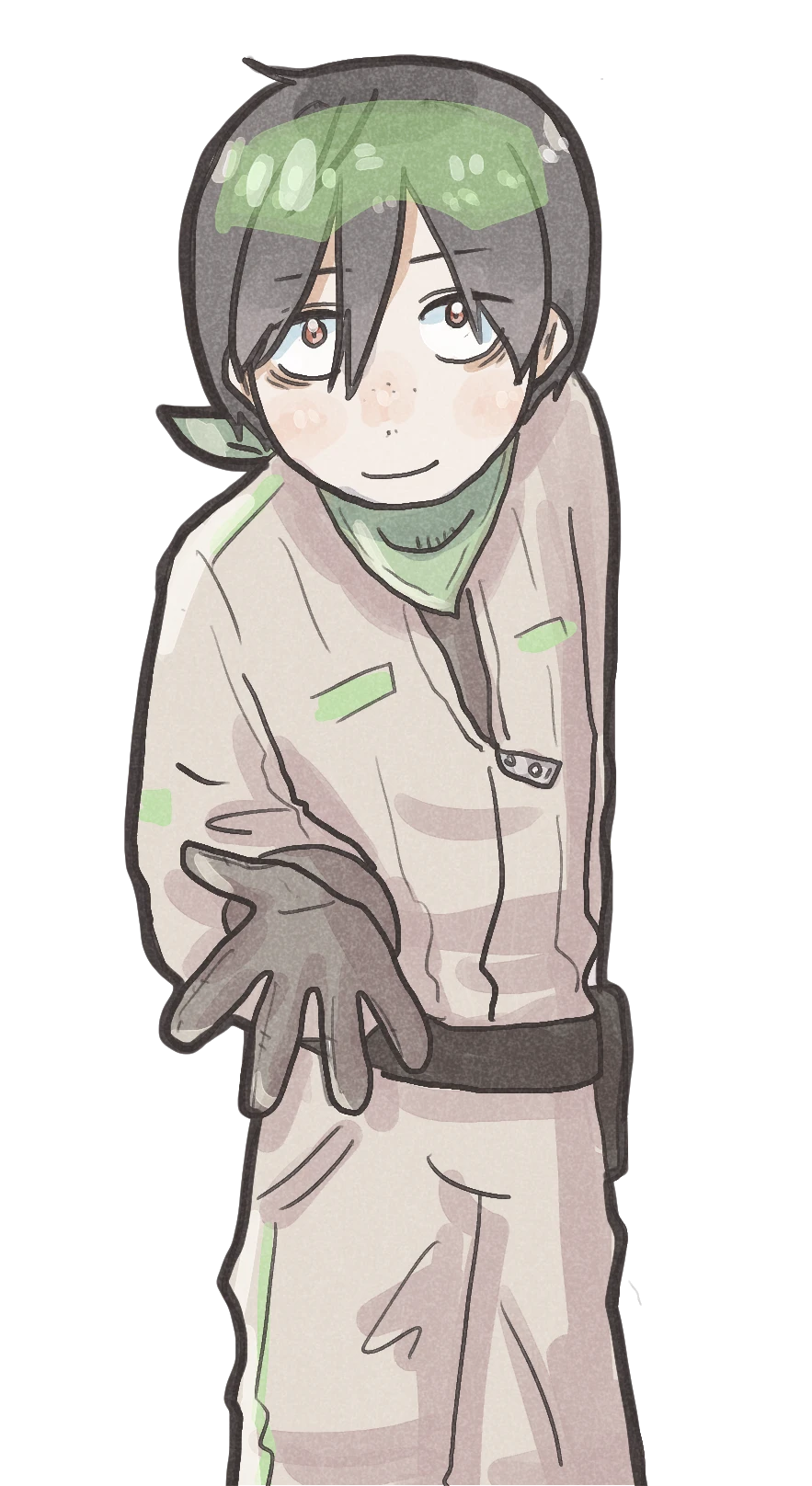 普段は機能的な作業着のことが多く、ガチャガチャといろいろなものを持ち歩いている。