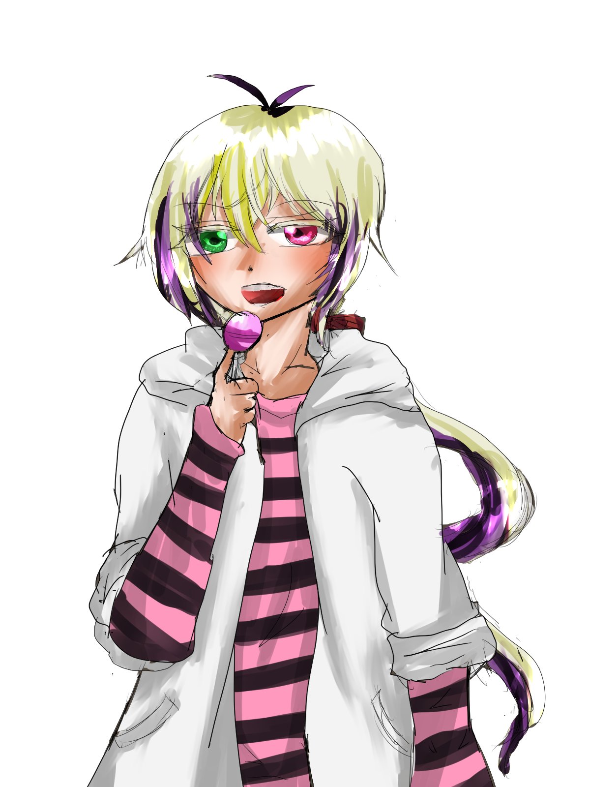 目の色 右目は緑色 左目は桃色