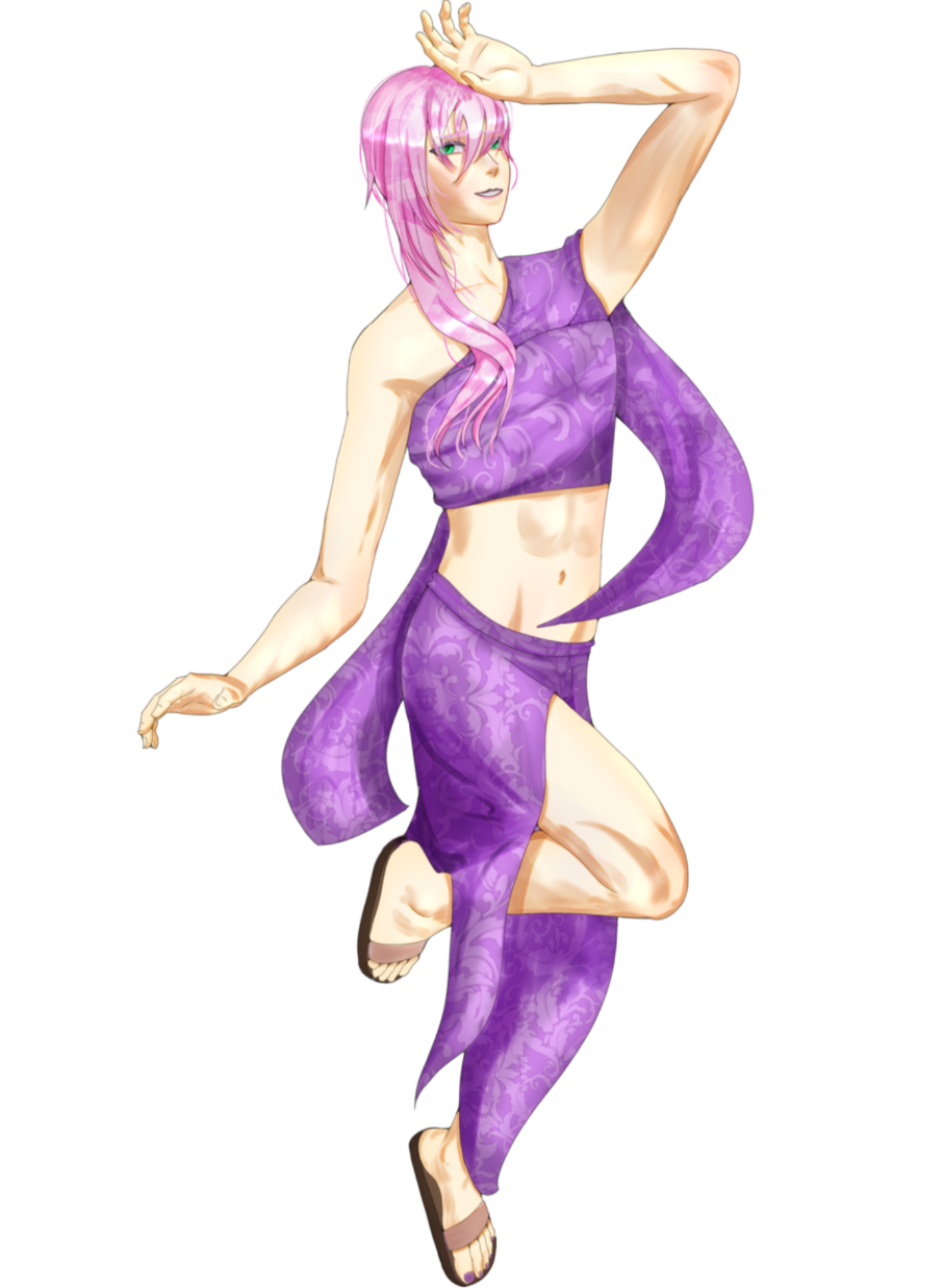 派手な髪色と露出の高い服を纏うTHE奇人な民族舞踏系ダンサー。