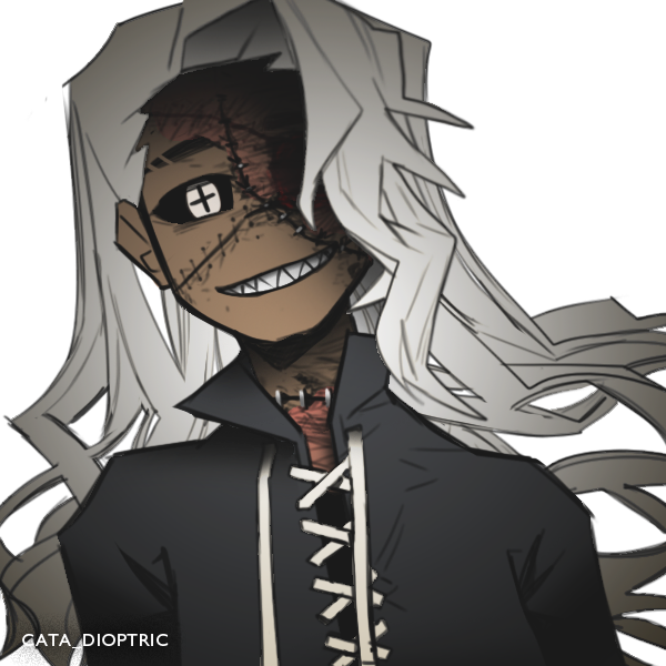 | 出自 | 小規模の研究施設で終身刑以上の受刑者を対象にしたレゲネイド実験が行われており、彼はその被験者のひとりから産まれた。 予測していなかった異常事態に研究員は最初扱いに困り、事態の一時的に保留するため内密に施設で隔離および保護することになった。数年もしないうちに扱いが面倒になった研究員が「親の罪は子の罪だ」と結論付け実験の被験者となった。この決断はこの研究施設のみの独断で極秘に決定したため責任は全て施設に課される。彼が実験体となり数年がたったある時、突然、施設全体が大きく揺れた。気づけば施設は半壊、彼の耳には劈くほどの悲鳴のような叫び声のような騒音と同時に視界には見たこともない外の世界が拡がった。少したって衝撃も収まりさっきまでの騒動が嘘かのように思えた頃、1人の無名の男が髪を掻きながら彼を見つけて、男のとこに来ないか?と提案を受けた、言葉の意味はなんとなくしか分からなかったが彼は頷いた、男はマイティと名乗った。 | |