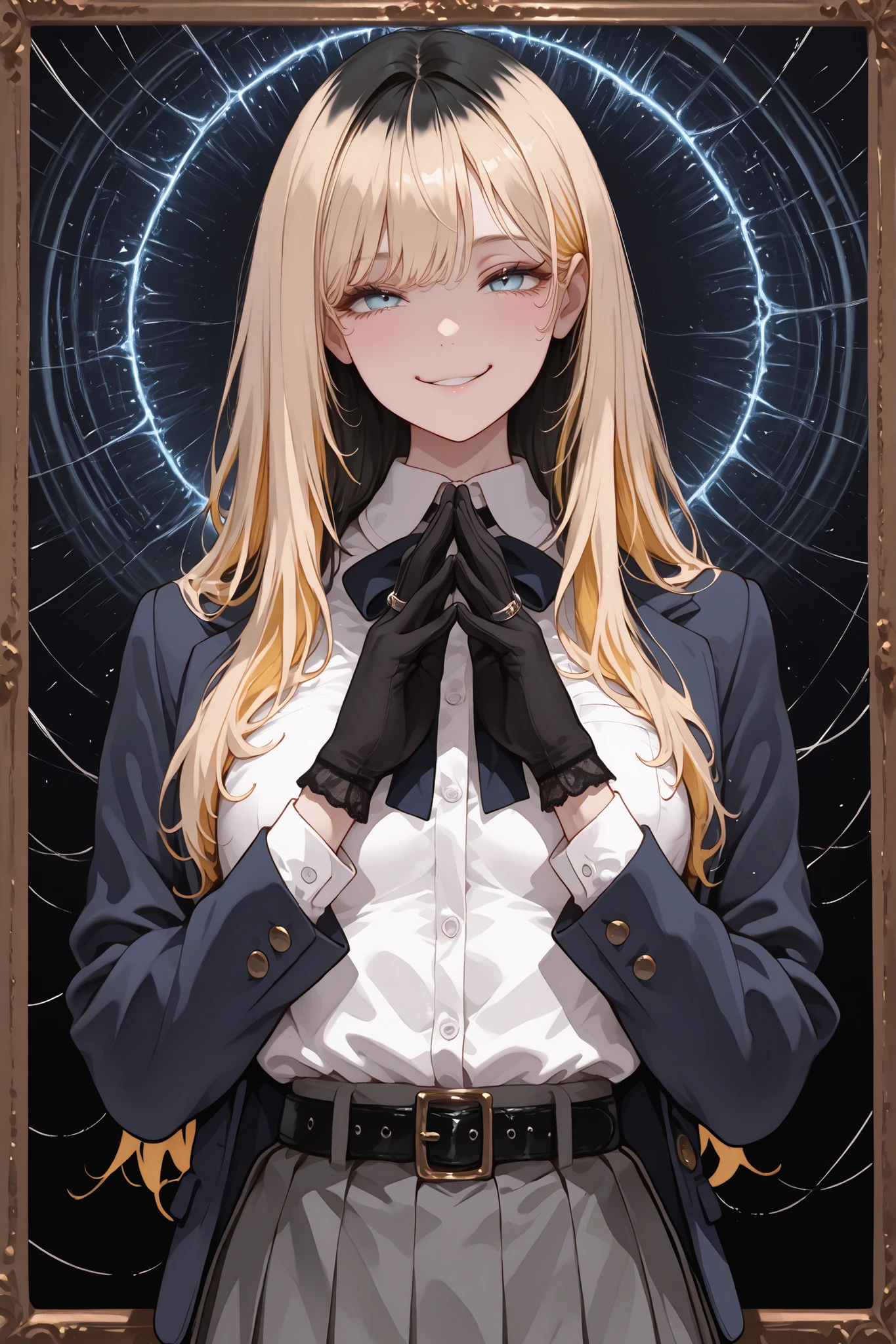 一度金髪に染め、時間が経った為根本だけ色抜けした所謂プリン頭と呼ばれる髪色をしており、切れ長の瞳で背が高い。十指に指輪をはめており、メリケンサック代わりになっている。