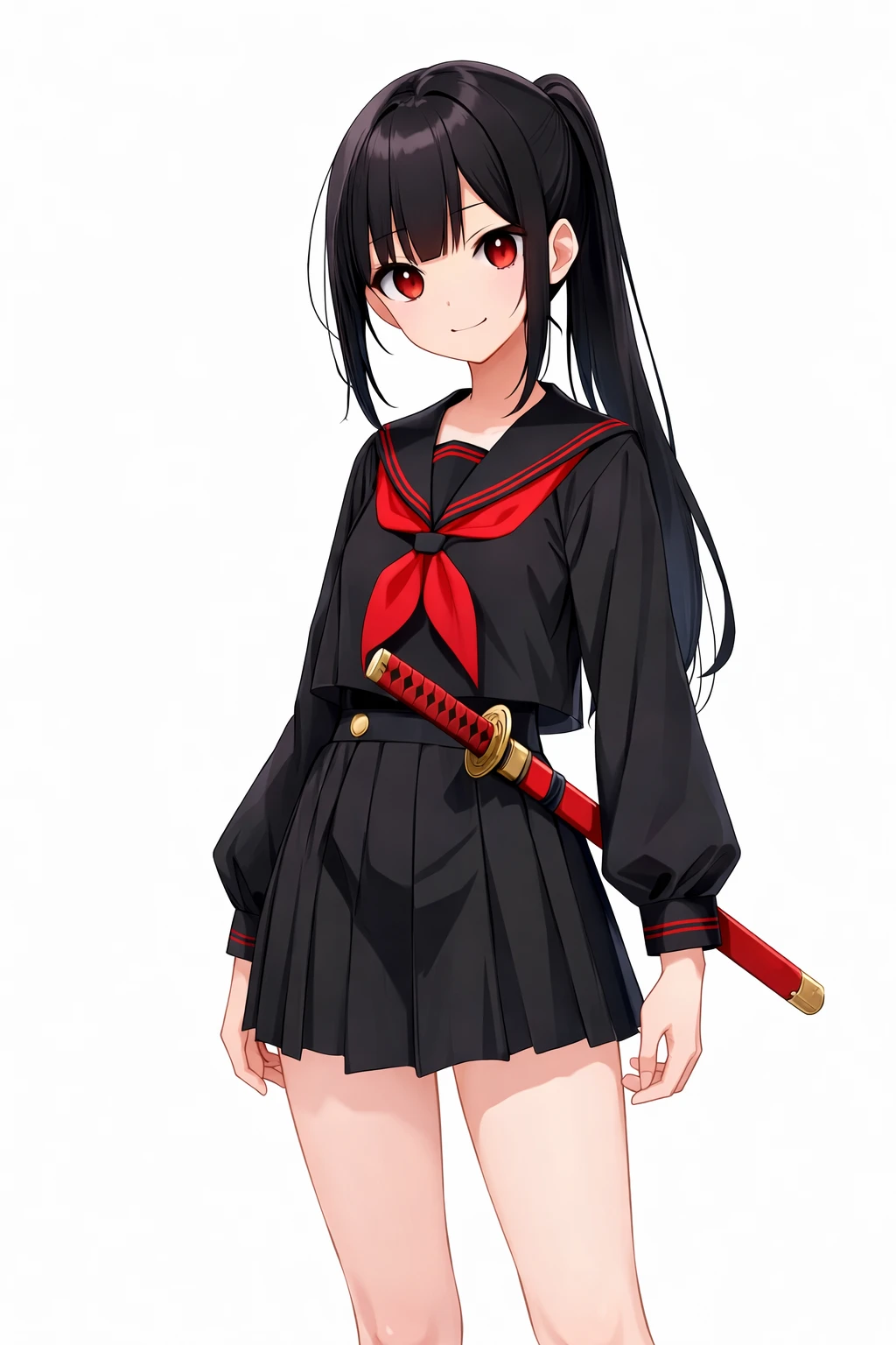 ・小柄なスレンダー ロングポニー黒セーラー