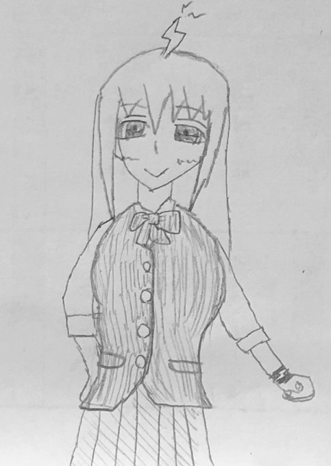 母親譲りの綺麗なブロンドの髪の毛と、雷のようなアホ毛、ハイライトの少ない綺麗な青い瞳が特徴。