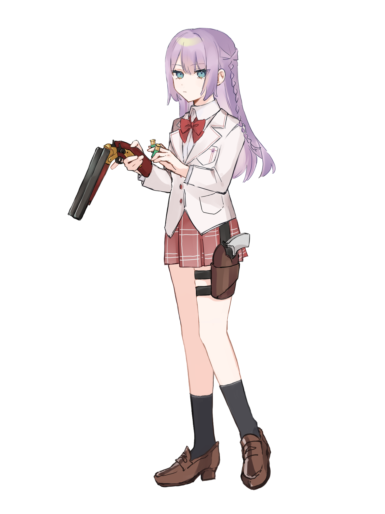 ⇒現在は支部長に買ってもらったソードオフショットガンを使用している。両手に一丁ずつ持って使うため、【カスタマイズ】で片手でもリロードができるようにしている。父親からもらったリボルバーは今まで通り太もものホルスターに入れている。