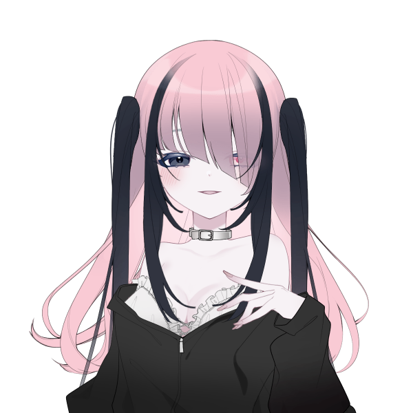 桃色と黒色のツインストレート。黒の瞳と赤の瞳。