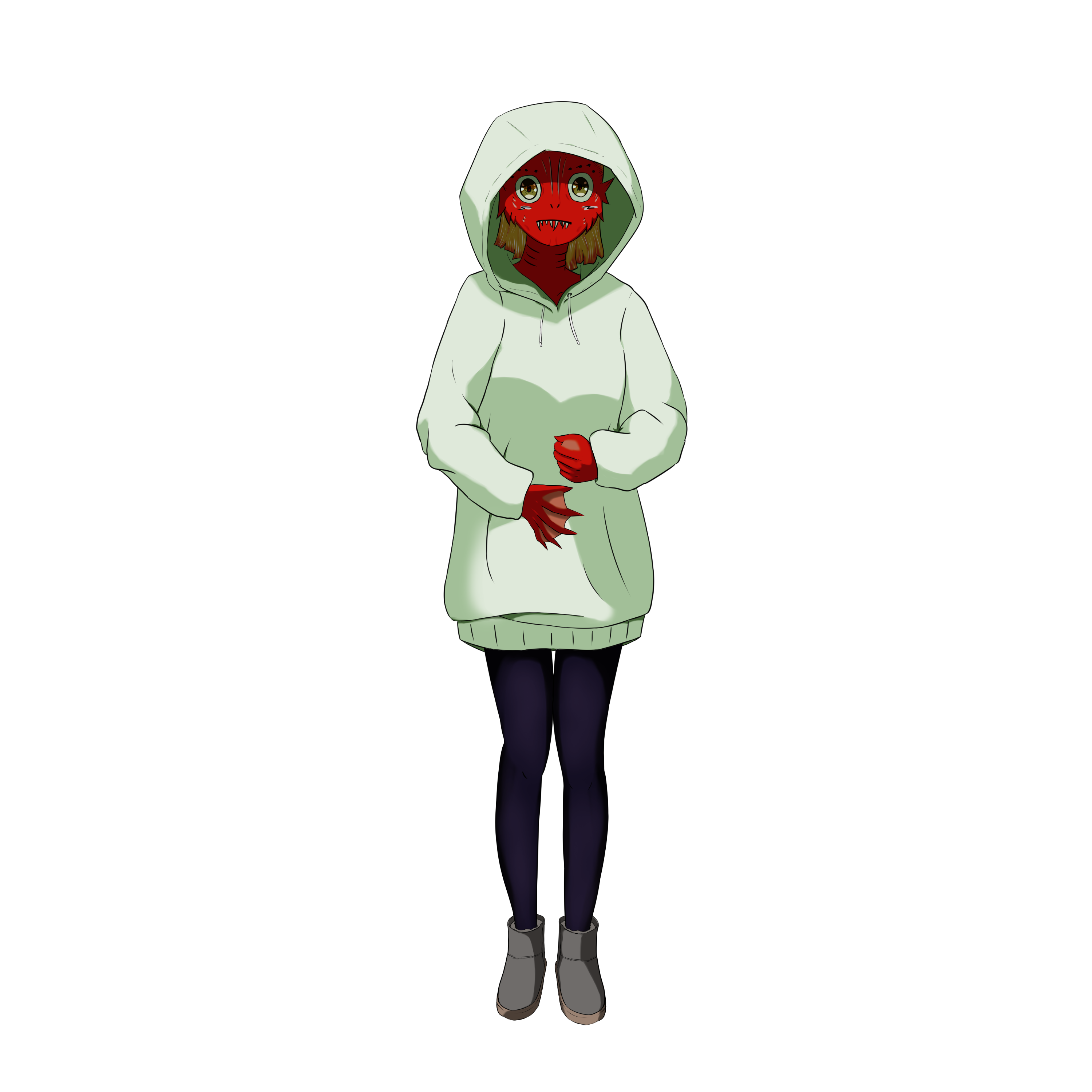 特殊メイクが取れなくなった天然ちゃんというキャラで高校にも通い続けている。
