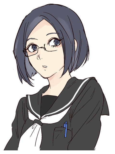 - 濃紺の髪、濃紺の瞳、黒のセーラー服