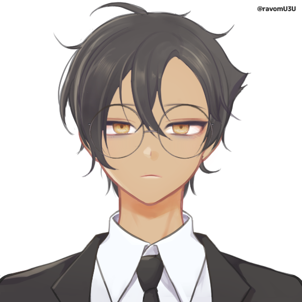 少しクセの強い固めの黒髪。前髪は少し長めで分け目は向かって右寄り。