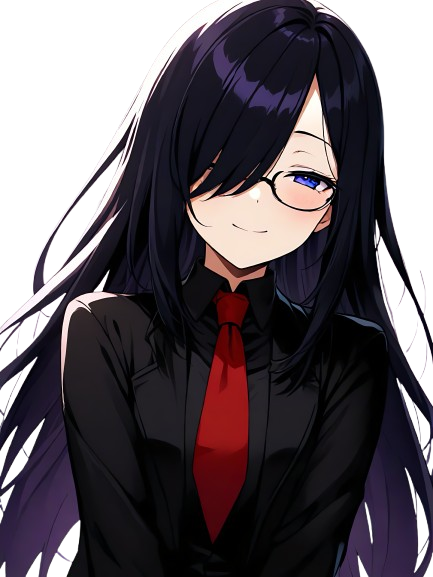 長い黒髪、黒い制服、血のように紅いネクタイ。隠すように垂れる前髪。その隙間から見透かしてくるような青紫の瞳。総じて美しくも妖しい容貌。だが服装などに関しては教師から注意される姿が見られない(そのため弱みを握っているとも…)。