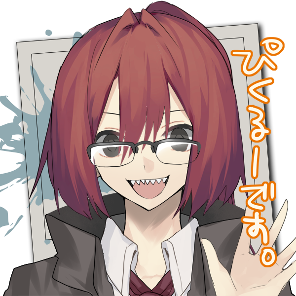 眼鏡をかけた赤い髪の長いポニーテール