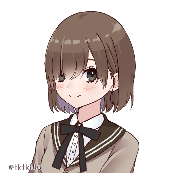 栗毛のショートヘア、片目が隠れる前髪が特徴的。肩まで伸ばしていた後ろ髪は、半年前にバッサリ切った。