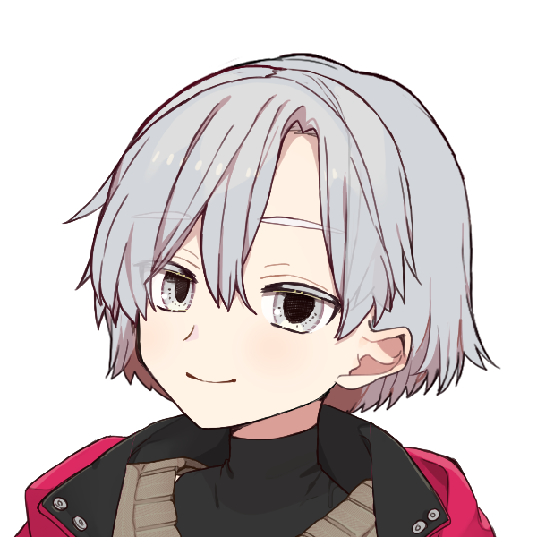 グレーの毛髪とそれより少し明るいくらいの瞳をもつ青年。幼げな顔つきに社会経験の少なさが滲んでいる。