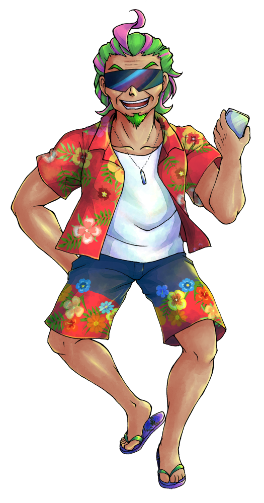 アロハシャツにグラサンというごきげんな格好のいい年したおじさん。