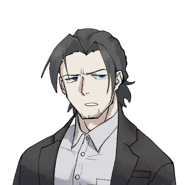 でっかくて程よく擦れたオッサン。あごひげはオシャレ目的。スーツはちょっと撚れててやはりオッサン臭い。こんなんでも禁煙派かつ下戸。実は義手なのだがそう見えないように製作班がめっちゃ頑張ってくれた。本人としては「仕事柄的には威圧感あった方がいいからメタリックで構わない」とのこと。