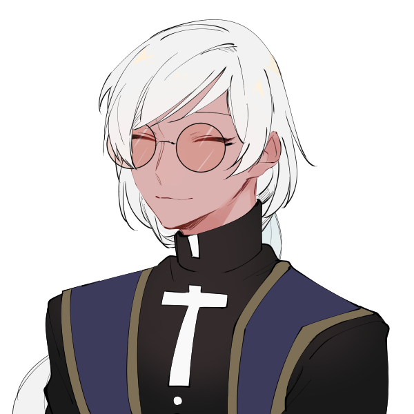 麻黒の肌に銀髪、ひょろりとした長身で色付きの丸眼鏡をかけている。