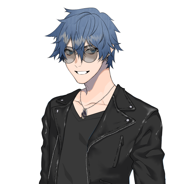 青みがかった髪と瞳が特徴的。サングラスをほぼ常時かけておりトレードマーク化しつつある。なお意味はない。