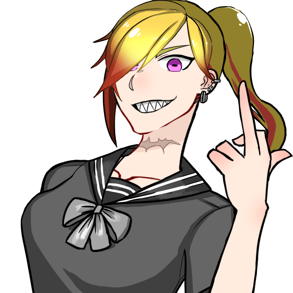 金髪に血のような赤メッシュと非常に派手。ギザ歯。スタイルはそこそこ良いが、バストに関しては偽。