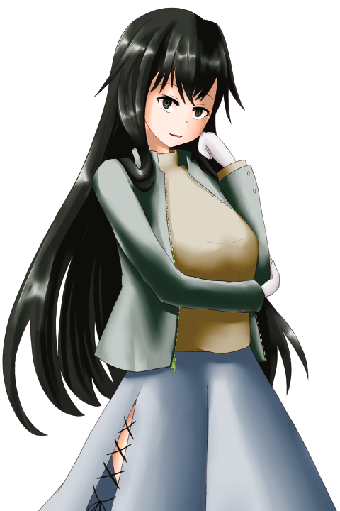 黒髪、黒い瞳をした女性。薄い笑みを浮かべており、時々除く歯がギザギザしているのが特徴。