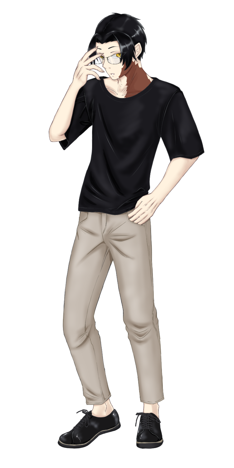 表情の変化は少なく、顔から胸、背中にかけて大きな傷跡があるため印象が悪く見えがち。