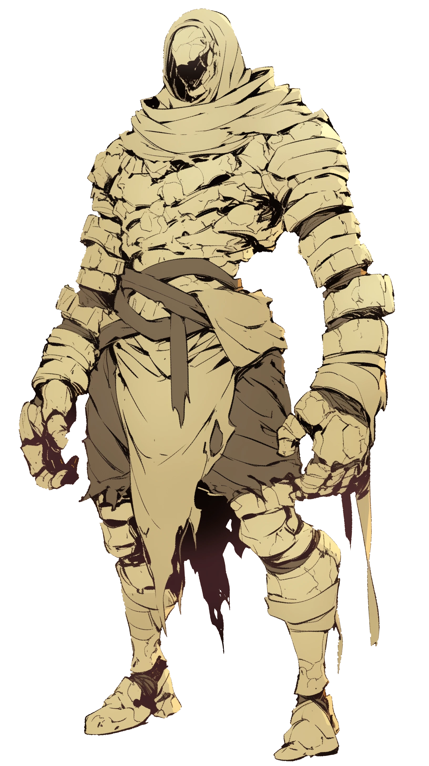 砂岩の塊が人の形をしたような姿。布切れをその身に纏っている。
